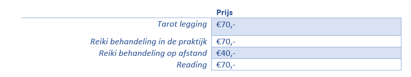 Onderstaande tarieven gelden bij de behandelduur van 1 uur.